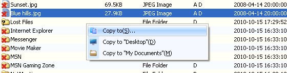 Copy Files by Context MenuWhen CuteRecovery finished scanning lost files or lost partitions, it will list all the recovered files in a list view control. To copy files, you can select the files and folders and then right click the mouse button. A context menu will popup as the following: